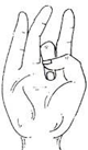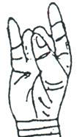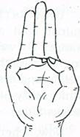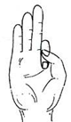In this mudra the tips of the middle finger and ring finger touches the