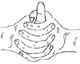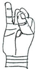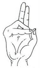 tips of thumb and the other two fingers stretched out.
